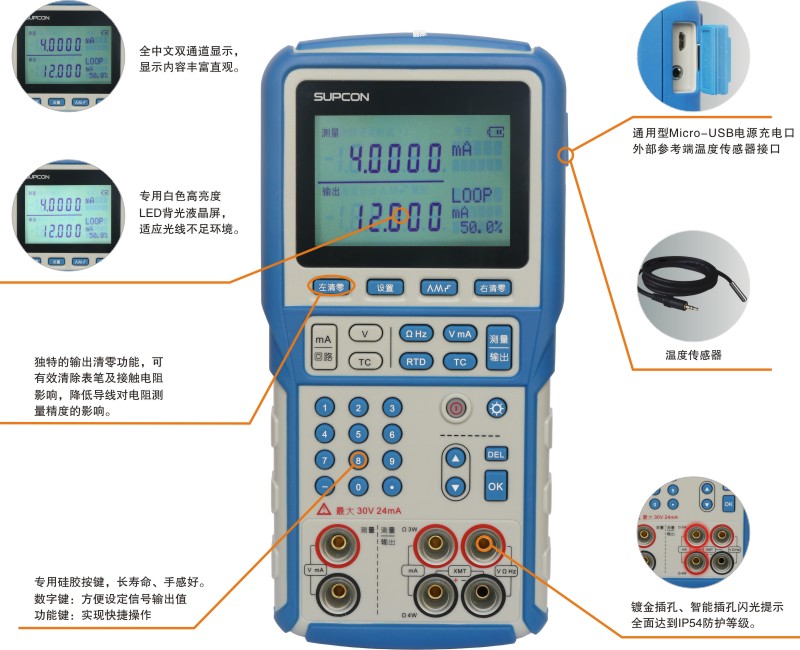 X系列過程校驗儀/校準器是一種高精度手持式信號測量/輸出儀表,能同時測量和輸出電壓、電流、電阻、頻率、熱電偶、熱電阻、脈沖等各種工業過程信號,其最高準確度為±0.01%FS。